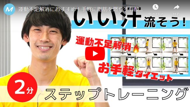 今回は、運動不足で悩んでいる方や筋トレを始めたい方におすすめのトレーニングをご紹介。比較的手軽にできるステップ運動を中心に構成する6種目/2分間のトレーニングです。
