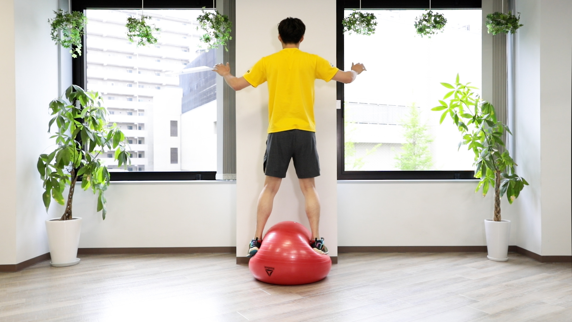 今回は、バランスボールを使った代謝をアップさせるトレーニングをご紹介。転びやすかったり、力みやすかったりするので、一つひとつの動きを丁寧にやっていきましょう。