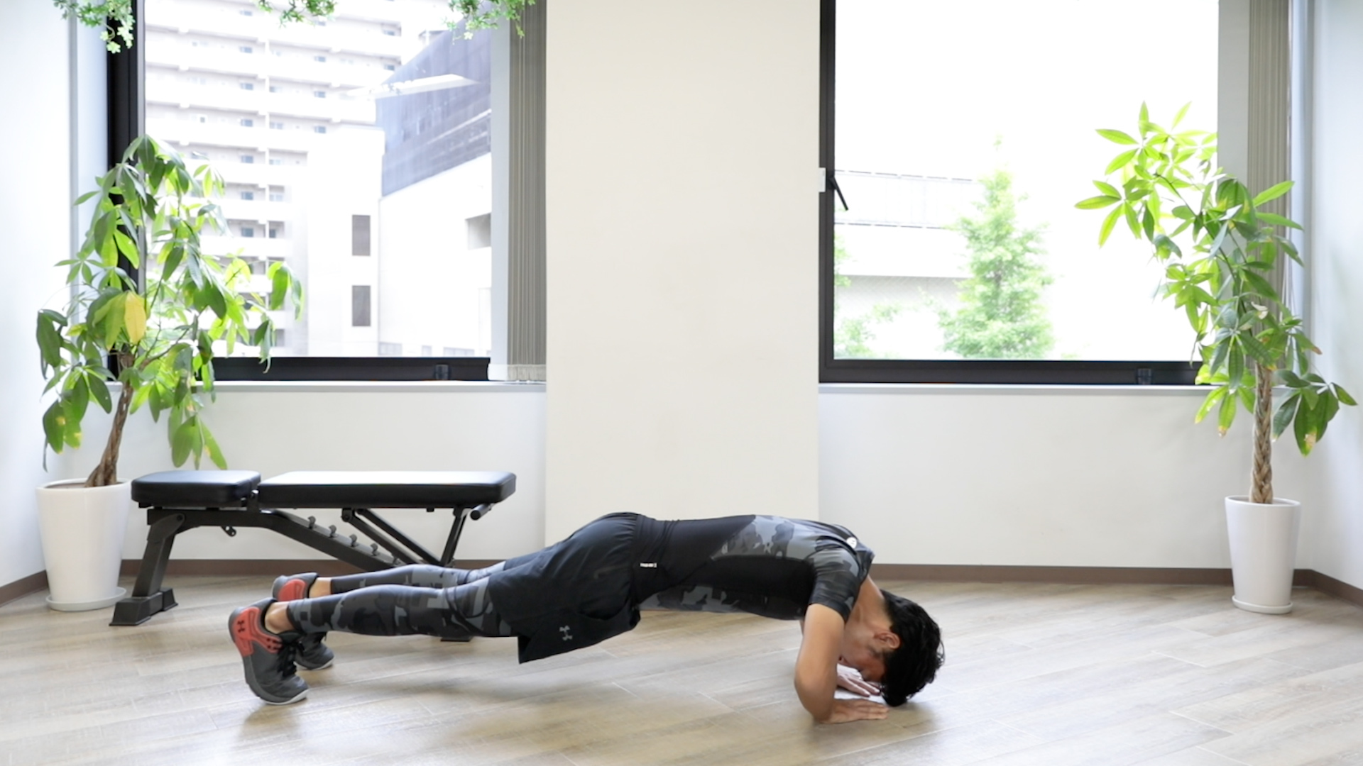 ①ノーマルプッシュアップ(20秒) ◀詳細記事はこちら