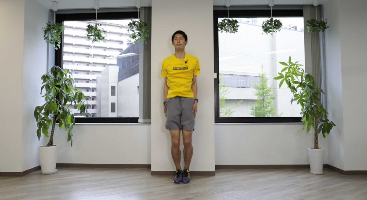 体脂肪の燃焼や、心肺機能の向上などが期待できます。30秒×3セット行いましょう。よりすばやく行うと、キツさがアップします。