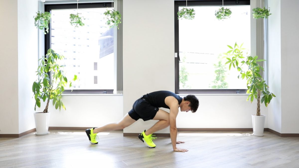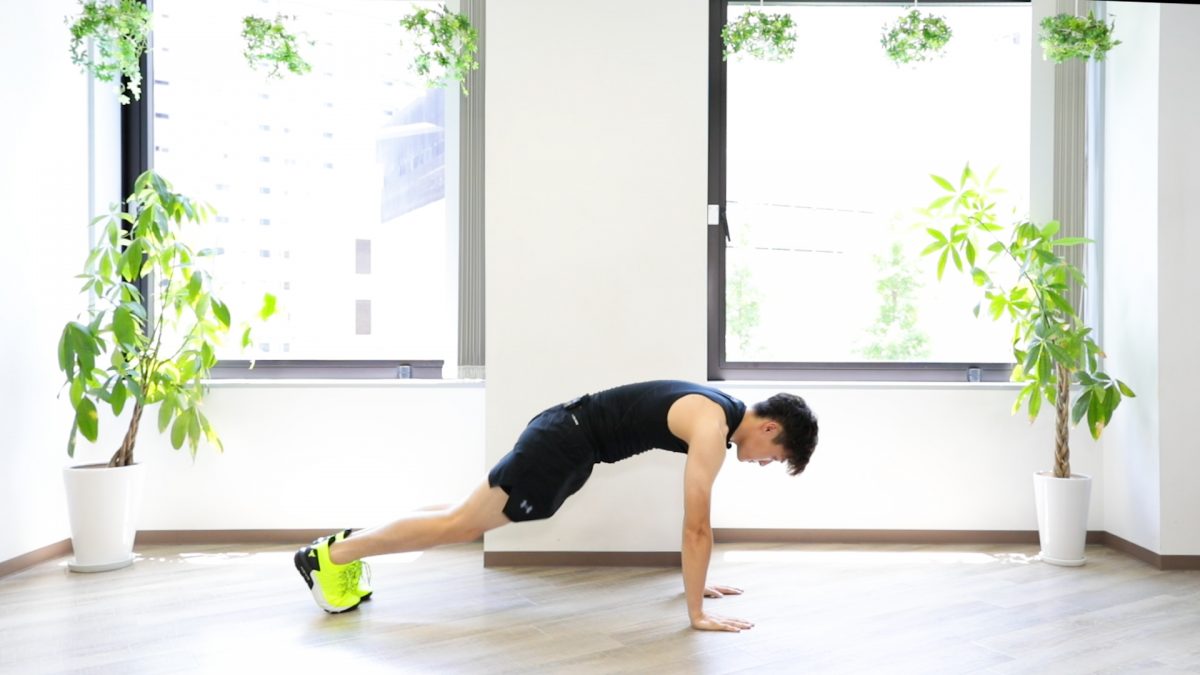 2.片脚ずつ後ろへ伸ばしていく。