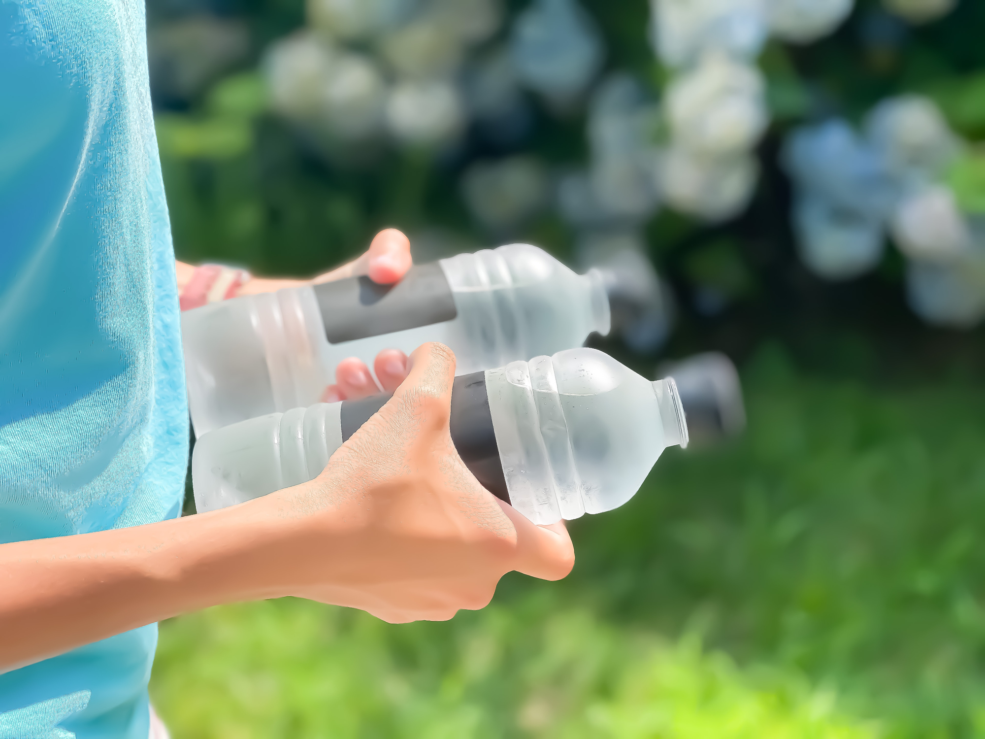 たとえば、ウェアは通気性がよい汗の吸収性がよいものを選ぶ。ほどよく冷たい飲料水をこまめに摂取し、体内から温度を下げるのもよいでしょう。