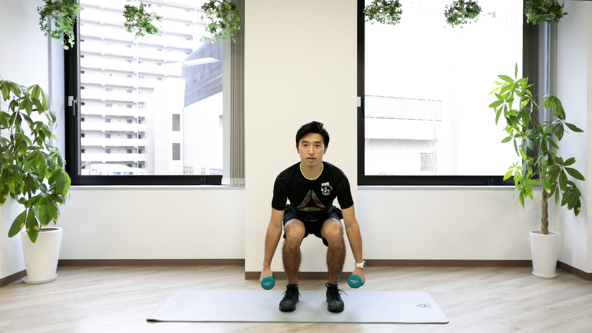②ダンベルスクワット