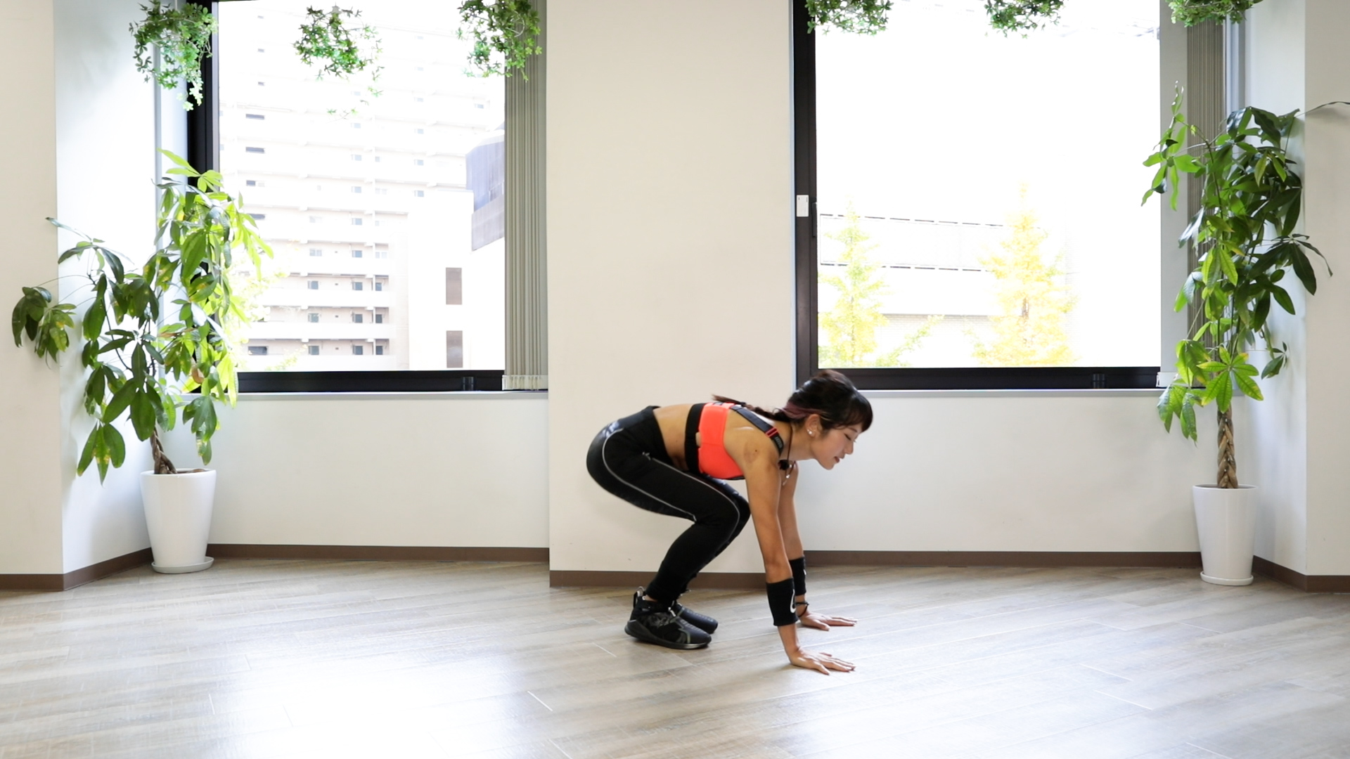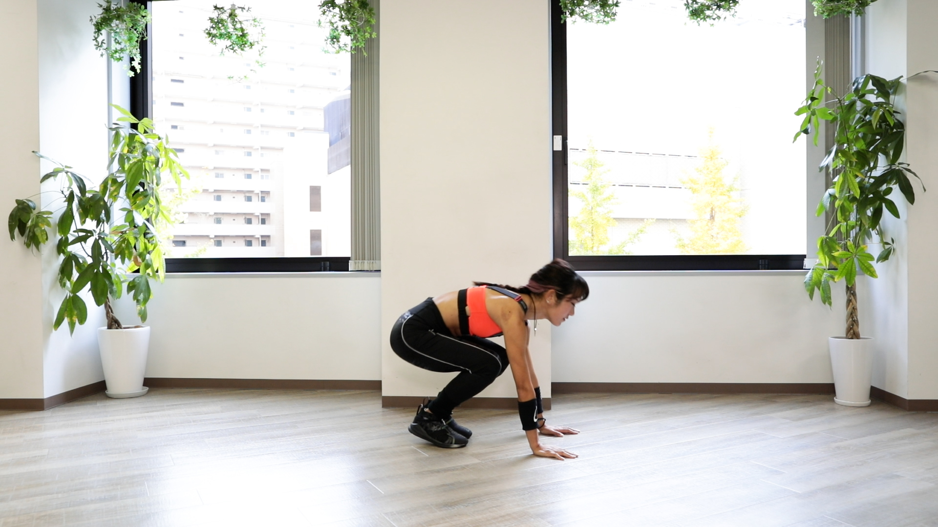 - しゃがんだら「右→左」と足を伸ばし「右→左」と縮めていく