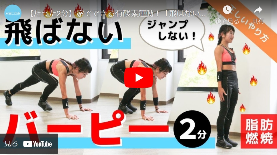 今回は「飛ばないバーピー」の正しいやり方をご紹介。全身の脂肪を燃やす有酸素運動です。ジャンプをしないため、マンションなどでもやりやすい種目となります。ぜひやってみてください。