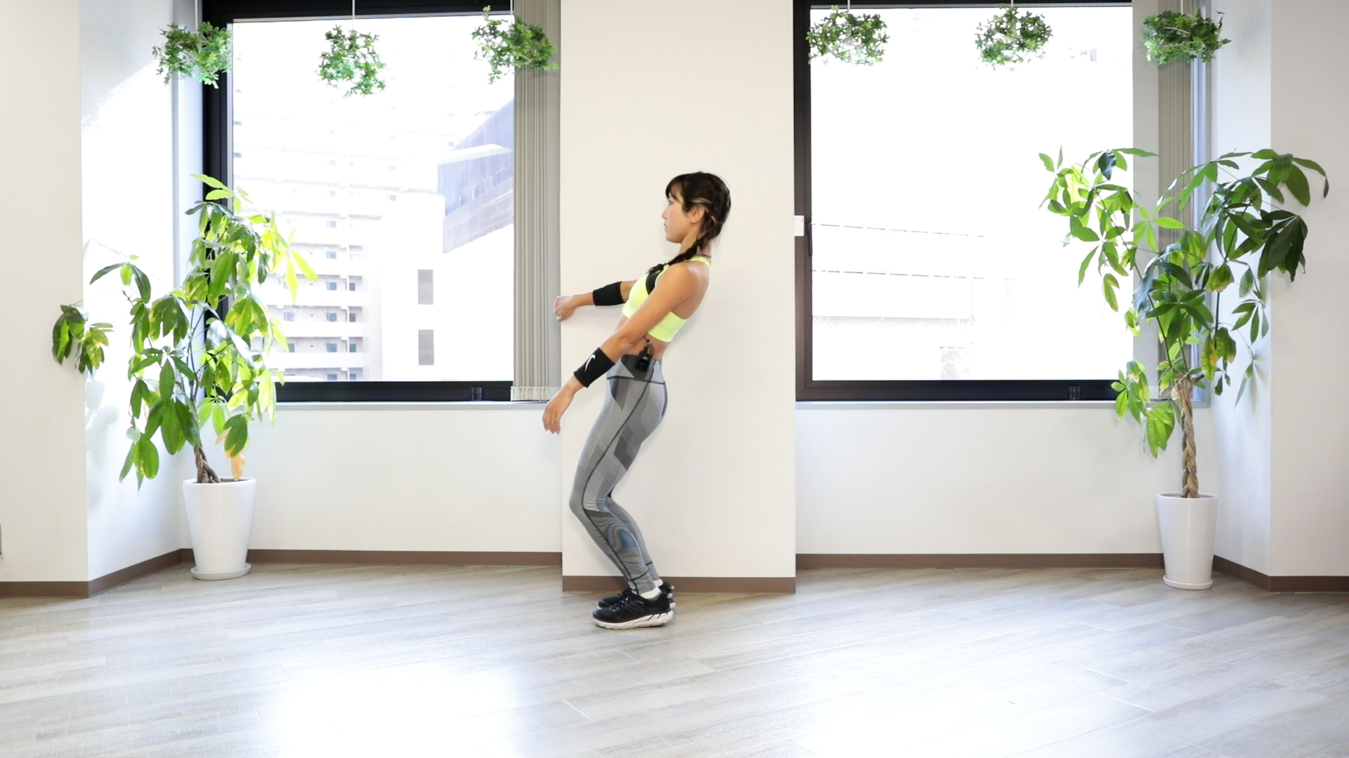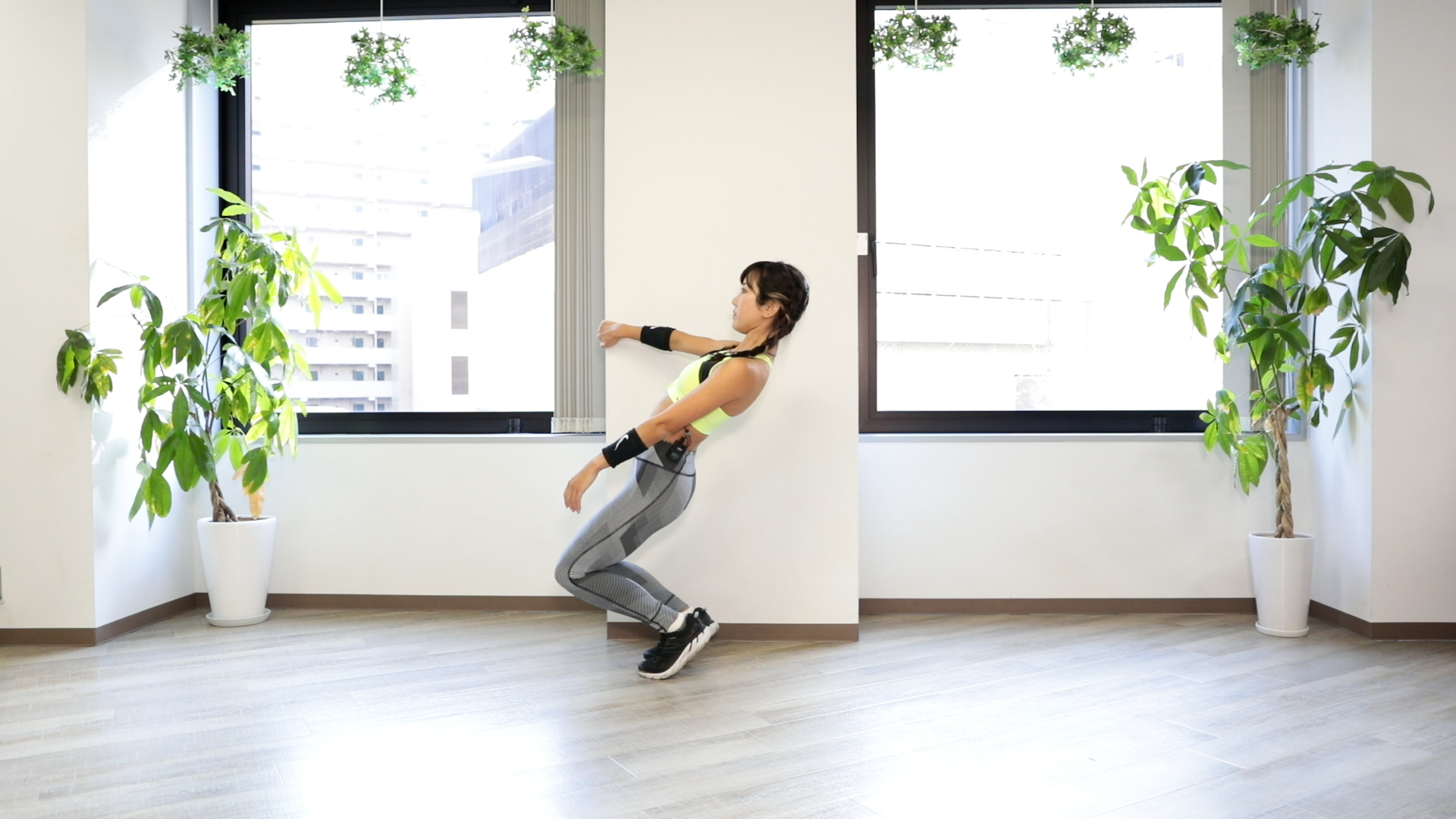- 片手を壁に着き、体を支えながら片方の手でバランスをとる
