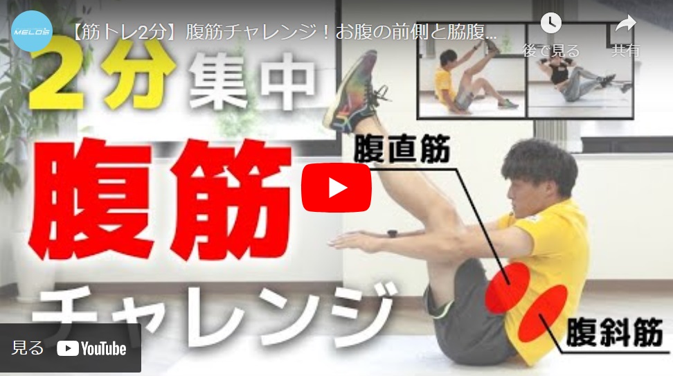【筋トレ2分】腹筋チャレンジ。お腹の前側と脇腹を鍛えよう (1/2)
