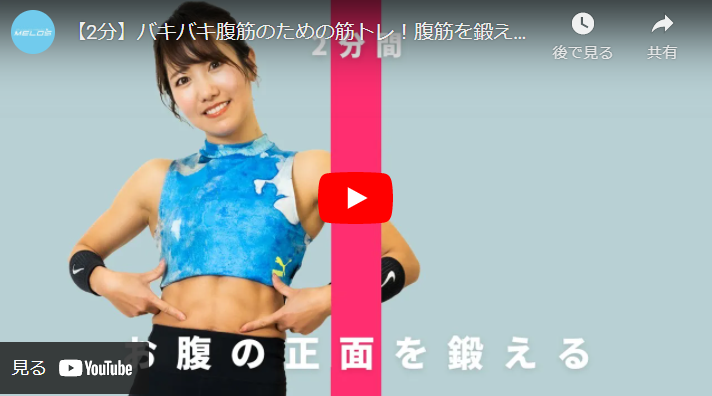 【2分】バキバキ腹筋のための筋トレ。腹筋を鍛える自重トレーニング (1/2)