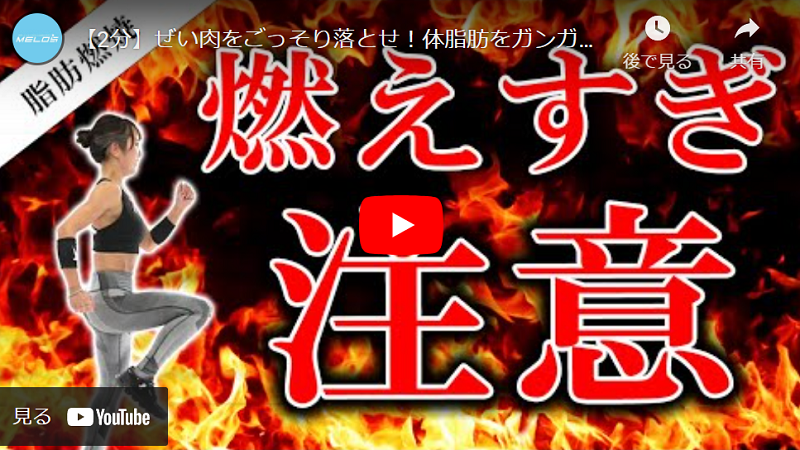 今回は、2分間の有酸素運動をご紹介。もも上げとバーピ―、ニージャンプの3メニューです。体脂肪をガンガン燃やしていきましょう。初心者の方も、ぜひやってみてください。