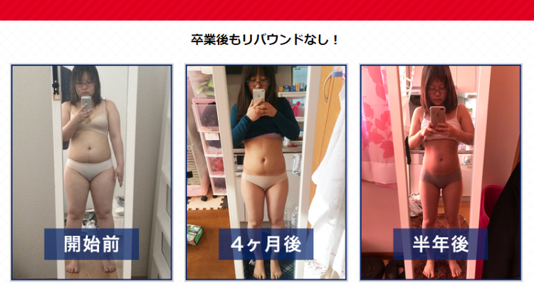 ダイエットの恐ろしい敵であるリバウンド。ライザップでは業界初のリバウンド保険を導入しました。これはジムに通っている最中にもかかわらず、二ヶ月以降に基準を超えた場合、2ヶ月分のシェイプアッププログラムを無料で受けられるというもの。リバウンド0を目指して頑張りましょう!