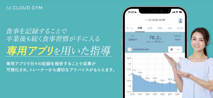 「CLOUD GYM(クラウドジム)」は、自宅にいながら専属トレーナーから指導を受けられるオンライン型パーソナルジムです。