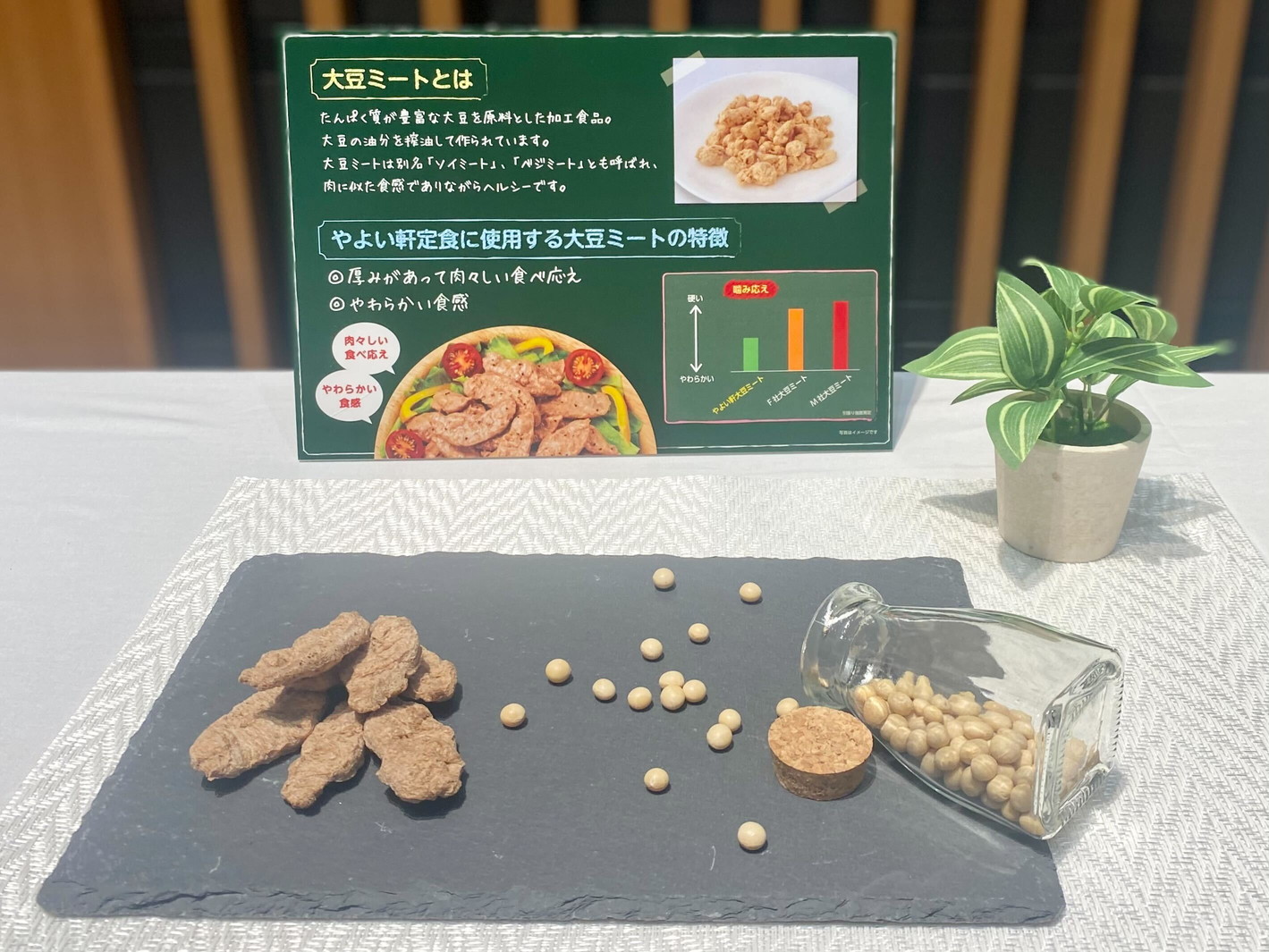 「アサヒコさまの大豆ミートとの出会いがすべての始まりでした。それまで大豆ミートは試したことがなく、人づてで美味しいよと勧められ、興味本位でアサヒコさまの大豆ミートを食べさせていただきました。しっかりとした厚み、食べごたえ、大豆の匂いも抑えられ、柔らかく、お肉のような再現ができているなと感じました。これであればやよい軒のお客様にもご満足いただける定食が開発できるのではないかと。また、大豆ミートを採用することで、健康的な食事をしつつ満足感を満たしたいというお客様のアプローチや、既存のお客様はもちろん、新規のお客様も利用いただけるきっかけを作りたいと思っています」(大谷さん)