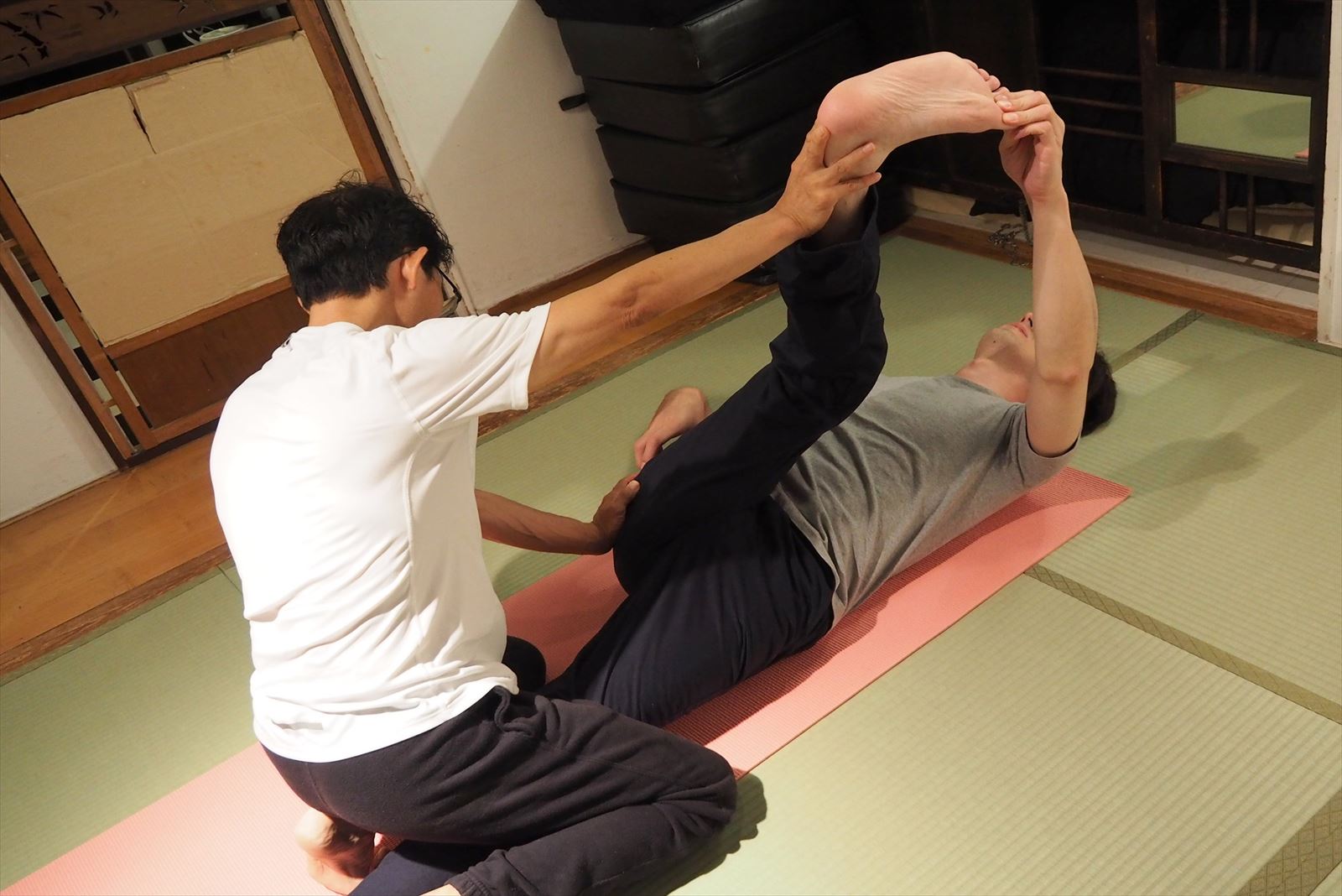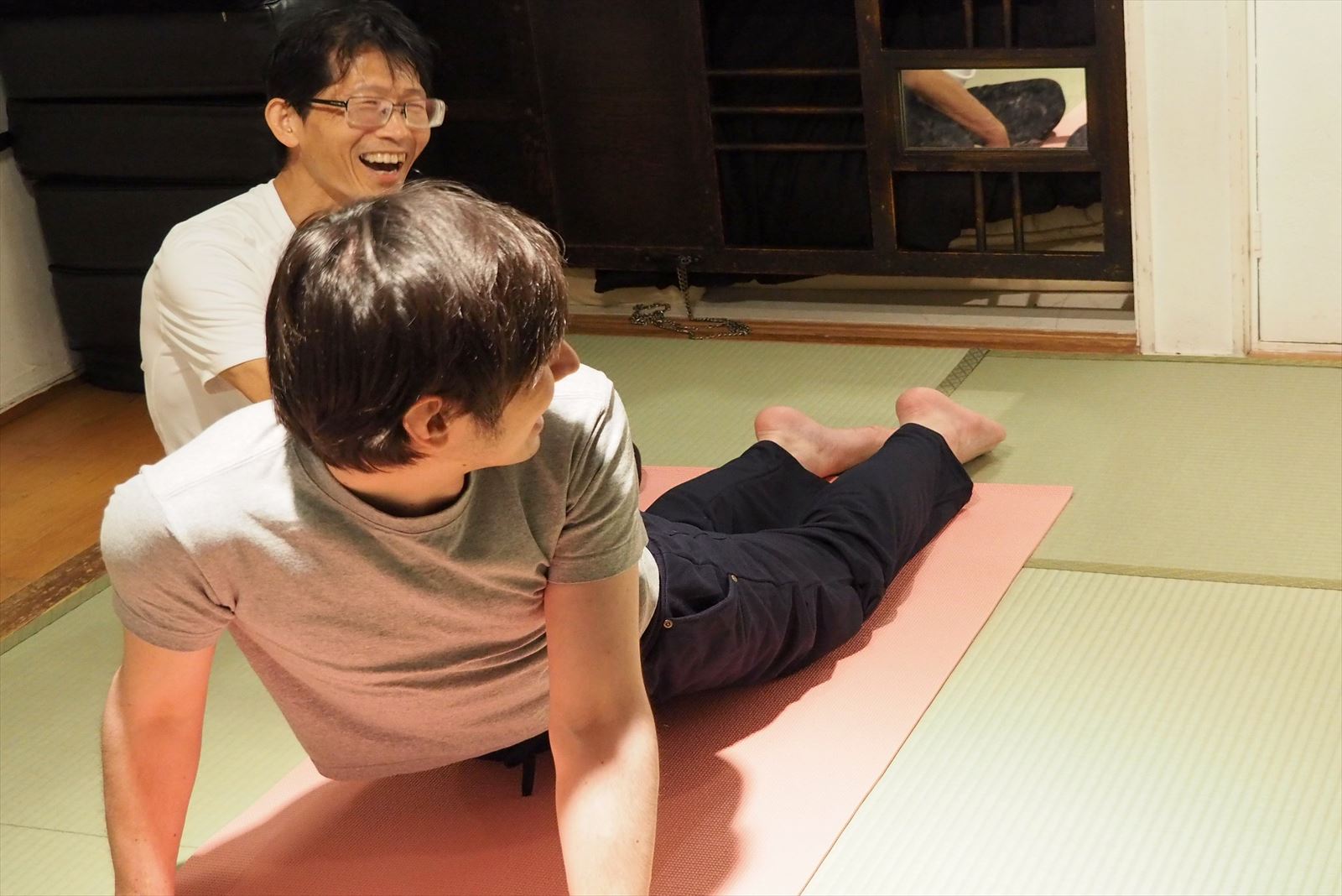 先生に「さすが」「素晴らしい」などとおだてられ、調子に乗る筆者。身体の硬さには左右で差があることに気が付きました。「筋肉は硬い日もあれば、軟らかい日もあります。それで体調の変化も分かってくる。硬い方を多めにやれば、左右で身体のバランスが整ってきます」と先生。