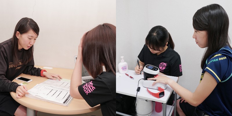 ▲取材を行った日にもSNSTが提供する栄養アセスメント(測定・評価)やカウンセリングサービスを受けに、至学館大学の競歩の選手として全国レベルの舞台で活躍する深水梨保さんが施設を訪問。この日は身体組成やヘモグロビン、骨密度などを測定したのちに専門のレクチャーを受講。杉島氏は今後、選手の身体情報をフードコーチに取り込んで、より有効かつ正確なデータを活用できるサービスにしていきたいと説明している