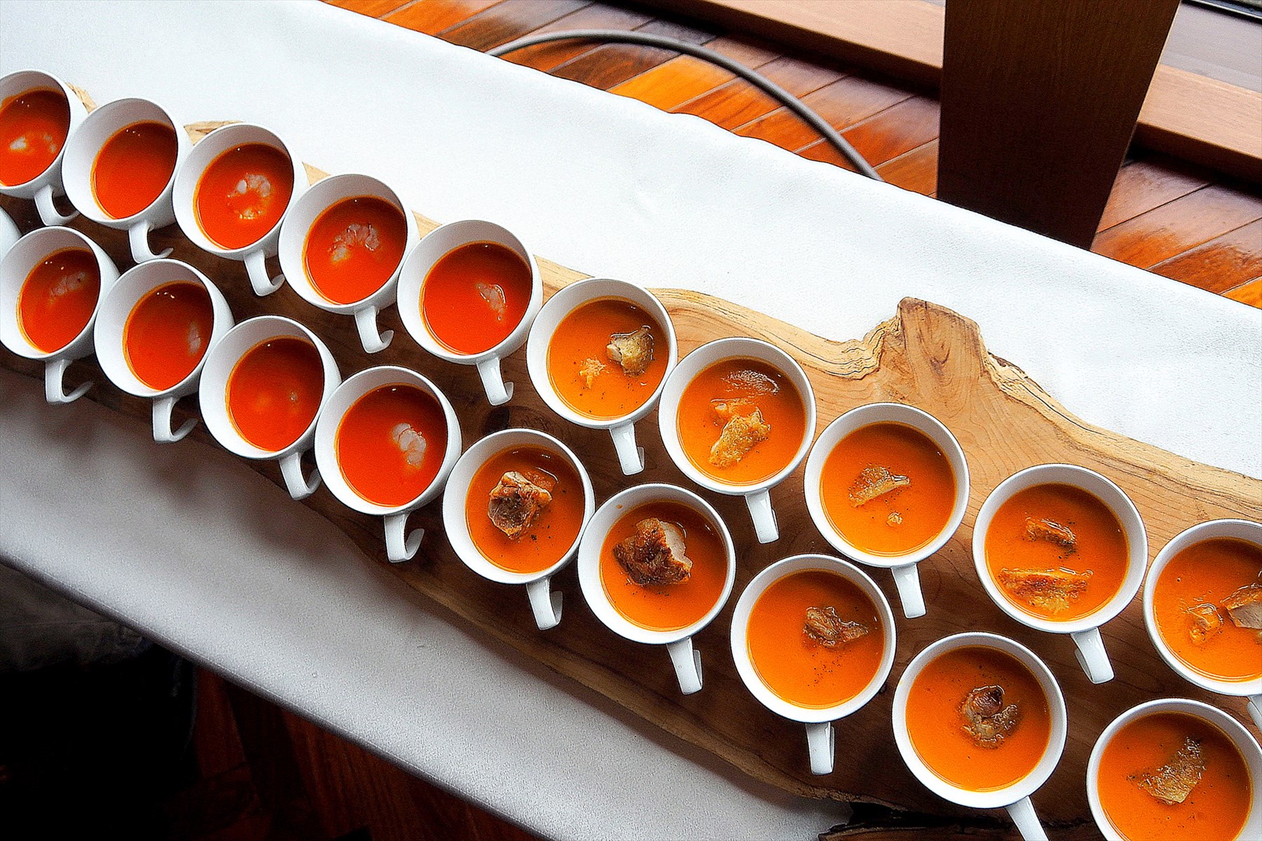 イベントでは、シェフの手によるスープ料理が2種類、振る舞われました。長友選手もお気に入りという「鶏肉のトマトクリームポタージュスープ」については「鶏肉をグリルして、あとはヨーグルトを混ぜています。スープを飲みながらタンパク質を30g補充できる。これは肉100gで摂取できる量に相当します。身体が冷えることはネガティブな効果につながります。なるべく身体を温めるべく、スープにして食べられるレシピを考えています」。口にすると濃厚でトマトの香りもよく、身体が芯から温まるようでした。