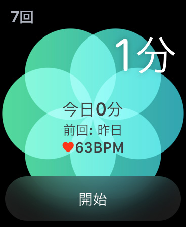 使い方はとてもシンプルです。「開始」をタップして画面に動くアニメーションを見ながら、または目をつぶって手首に返される振動を感じながら呼吸を整えます。深呼吸を行う長さは呼吸アプリを開始する前に、Apple Watchのデジタルクラウンを動かして分数を変更できます。iOSの「Watch」アプリから呼吸アプリの詳細設定を開くと、1分間に行う深呼吸の頻度や手首に返される振動の強さなども変えられます。呼吸アプリを毎日の習慣にしたくても、つい忘れてしまうという方は、Apple Watchがアプリの実践を促してくれる「呼吸リマインダー」の繰り返し回数を多めに設定しておくとよいでしょう。