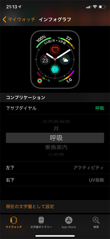 ▲呼吸アプリは、Apple Watchのコンプリケーションとして文字盤に常設しておくとすぐにアクセスできて便利