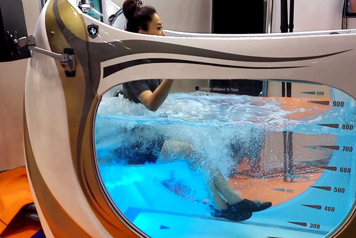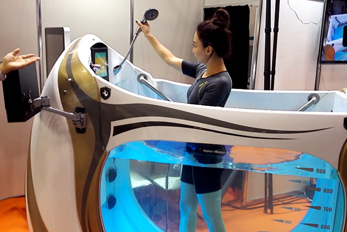 トレーニング・シャワー・スパ入浴がこれ1台で! インパクト大の「Water Walker & Spa Steed pro」【SPORTEC 2017 #1】