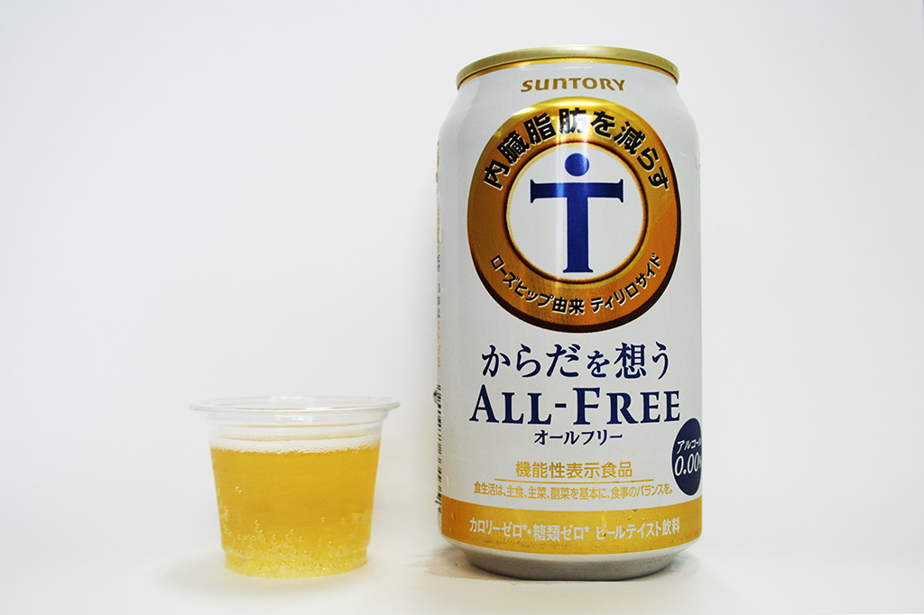 ローズヒップに含まれるポリフェノールのひとつで、内臓脂肪を減らす機能があるとされる「ティリロサイド」を加え、機能性表示食品として認められた「オールフリー」。原料に粒選り麦芽100%一番麦汁、アロマホップ100%を使用し、天然水100%仕込みというこだわりも。