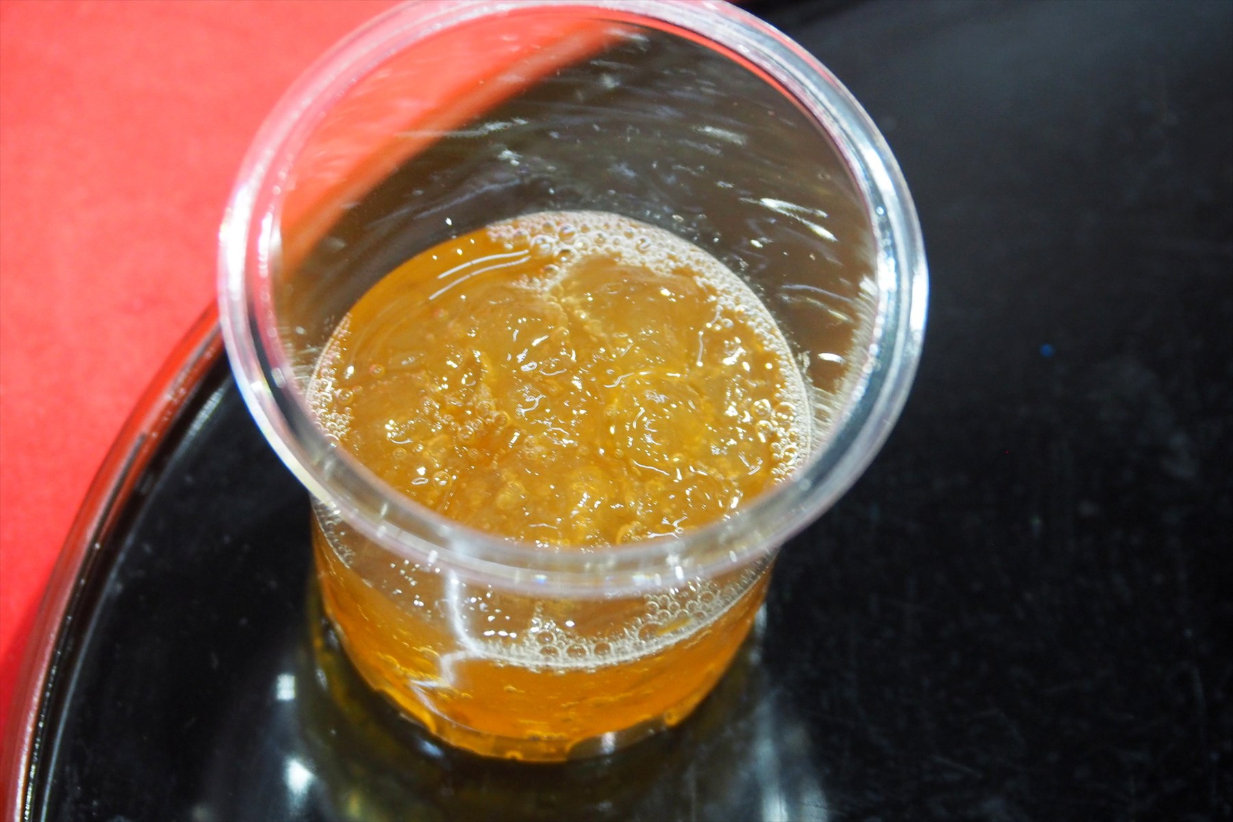 ▲綺麗な色をしたゼリー飲料。細かい果肉が入っています