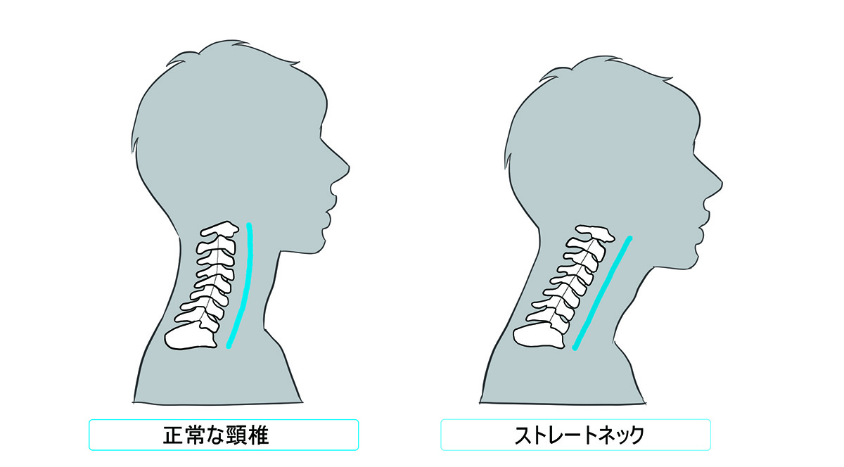 「え? まっすぐじゃいけないの?」という人もいると思いますが、本来人間の首の骨は、頭の重さを分散して支えるために緩やかに前方へカーブしている状態が正常なんです。