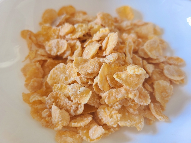 シリアル食品のひとつで、トウモロコシ粉をフレーク状にしたもの。