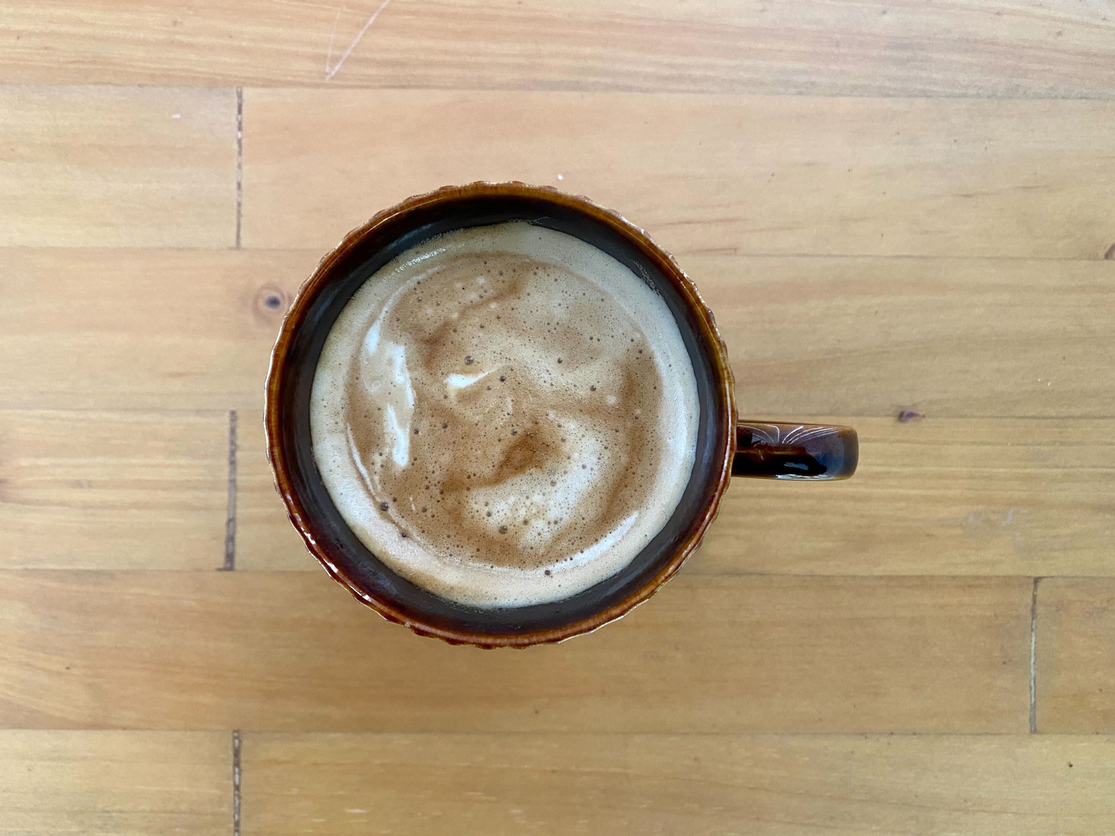 さっそく一口。牛乳で割っていたときと味・コク変わらず、おいしいカフェラテとなりました。拍子抜けするほど「普通においしい」。