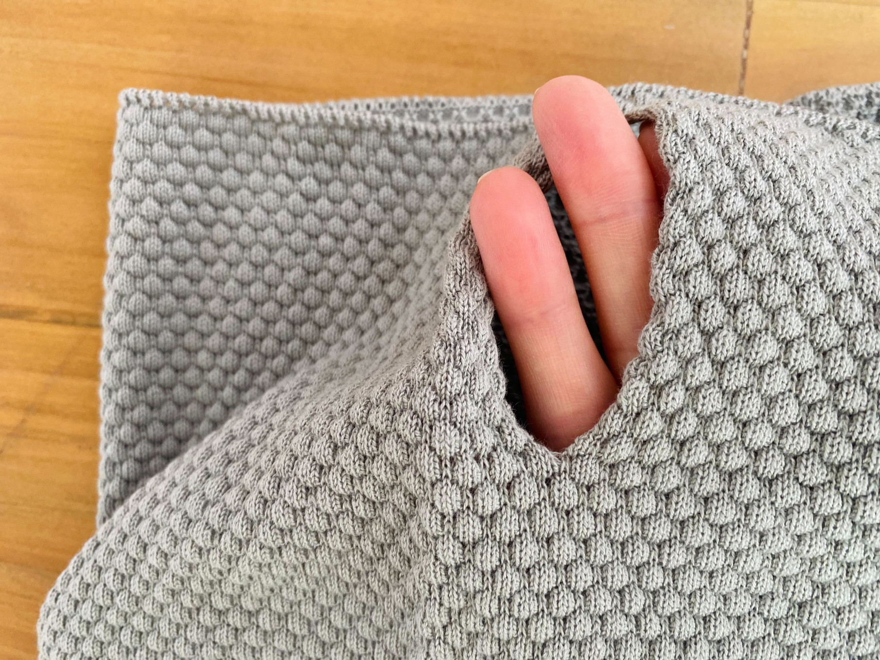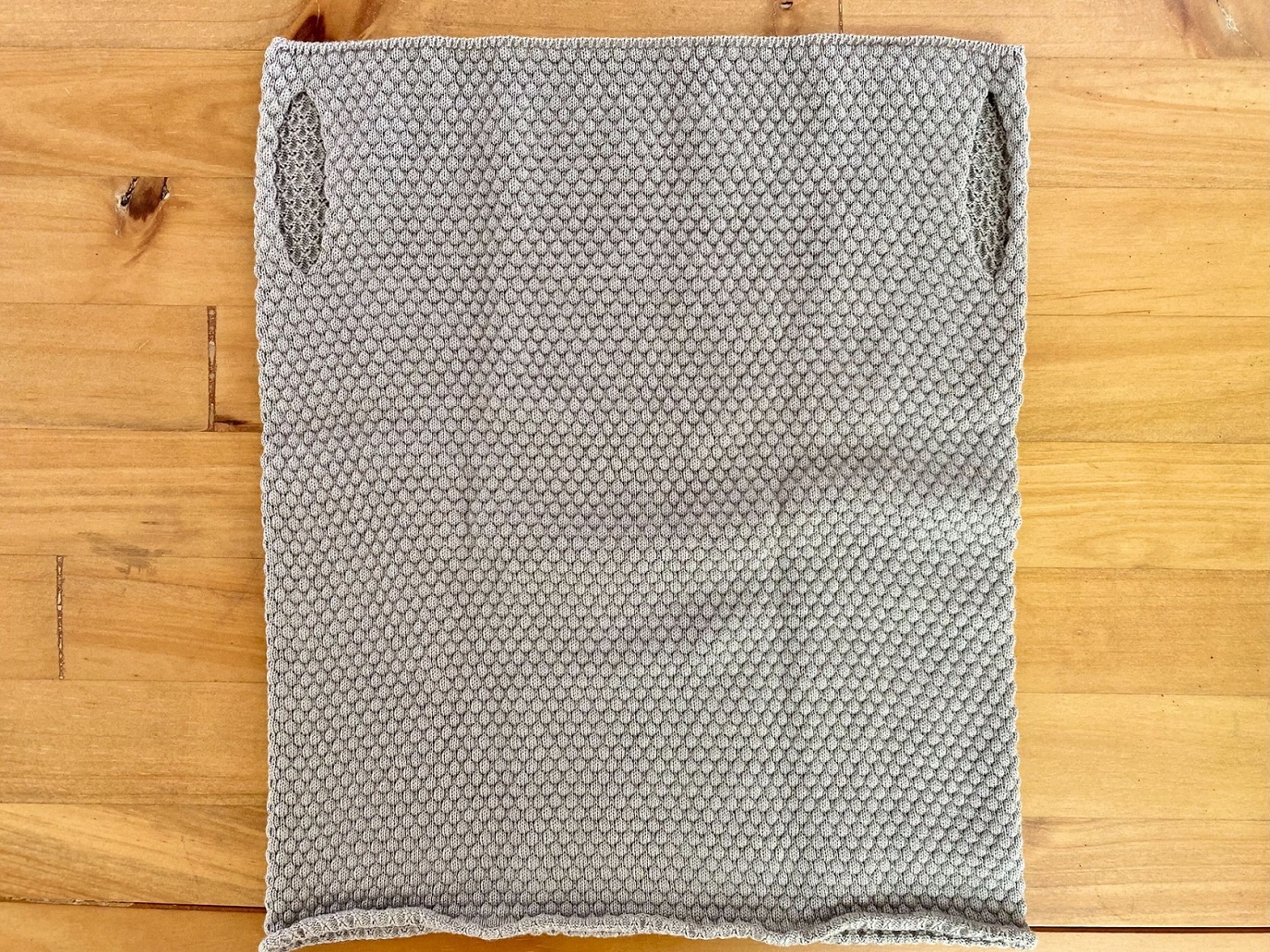 今回試した2WAYネックカバーは、頭から被るタイプ。耳に掛けられる仕様となっています。さらっ、ふわっとした触り心地で、とても柔らか。ニオイもありません。