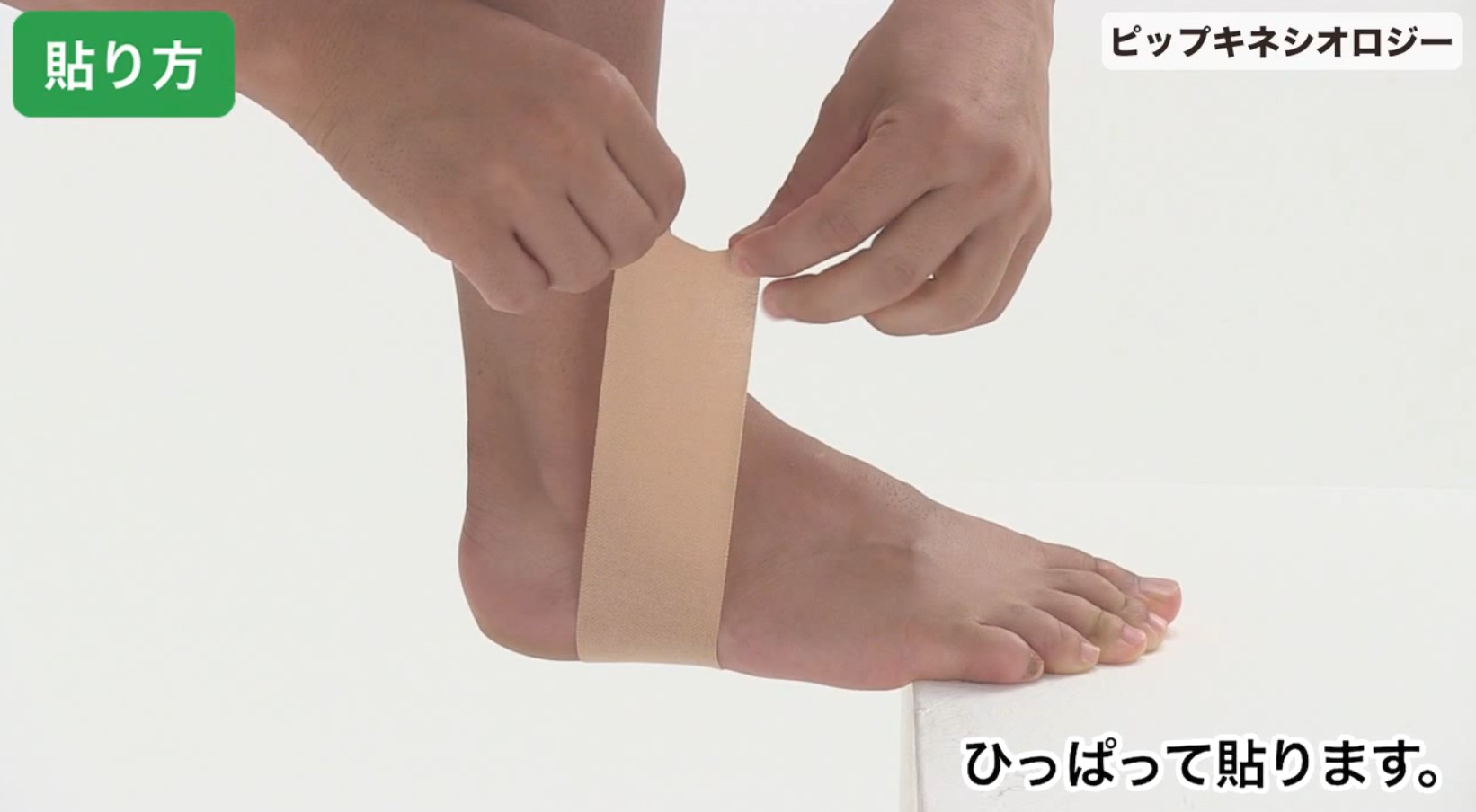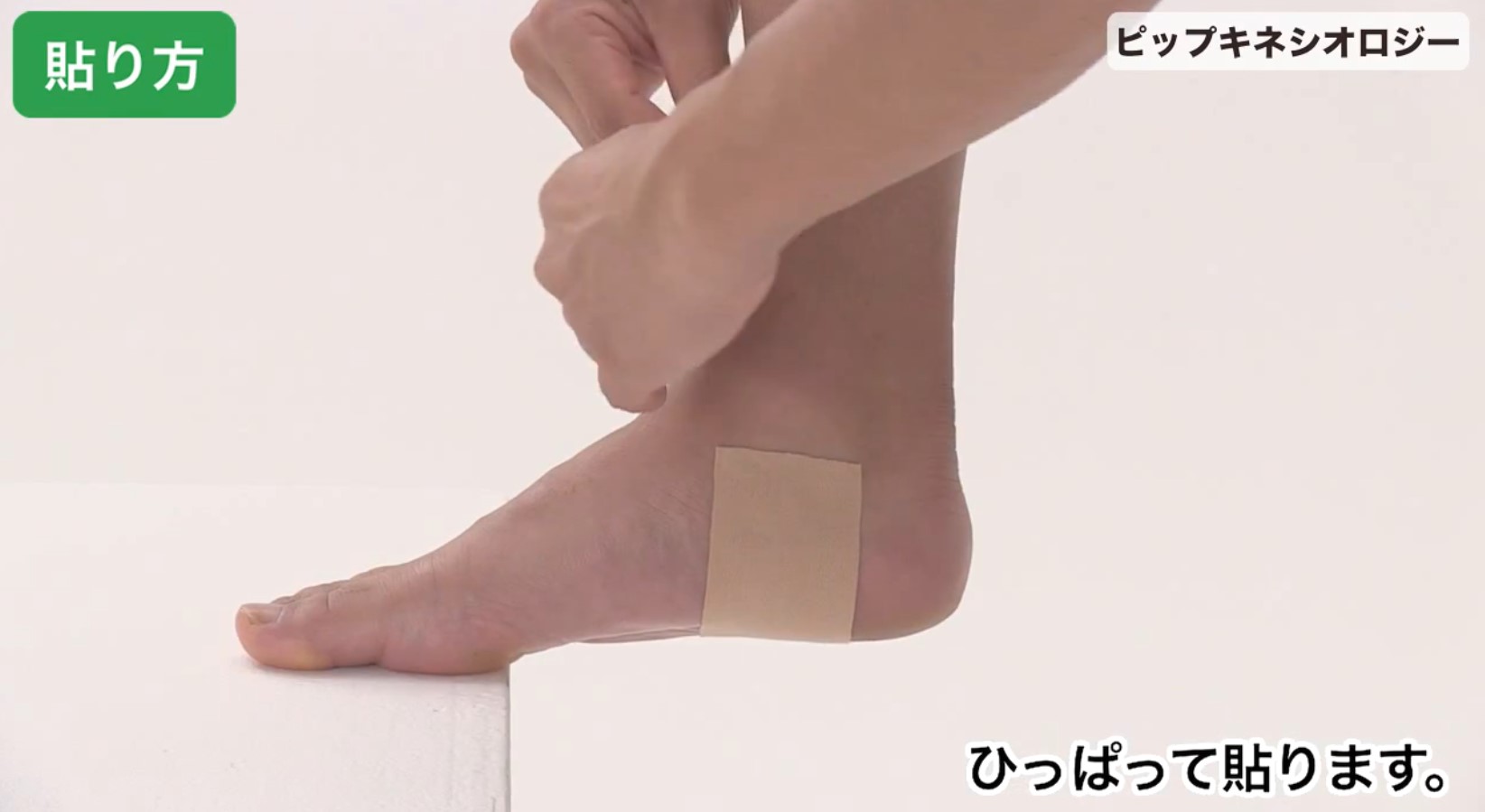 内くるぶしの上の方へ、ひっぱって貼りましょう。