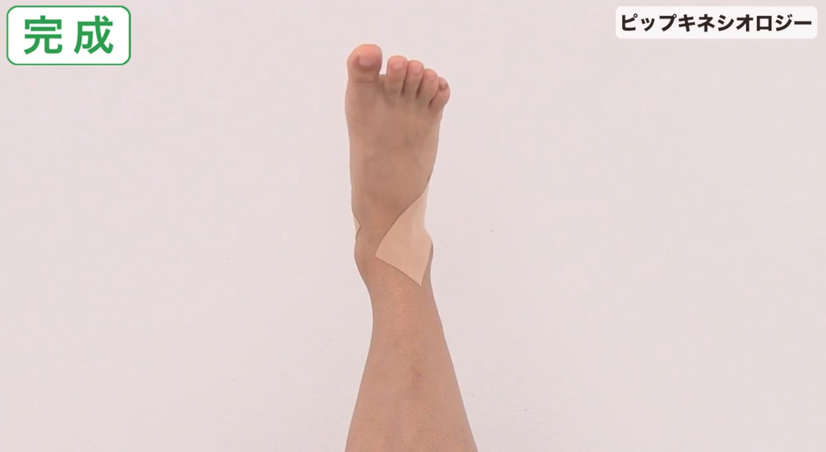 6.最後に足の外側サイドからテープをひっぱり、足首の曲がるところへ通します。
